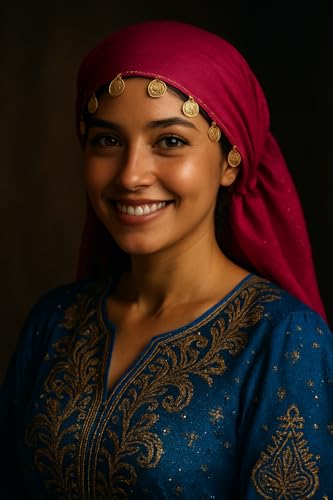 Generic - Head Scarf with Gold Coin Headpiece, Arabian Costume Accessory, Available in Fushia, Black, Blue, Red