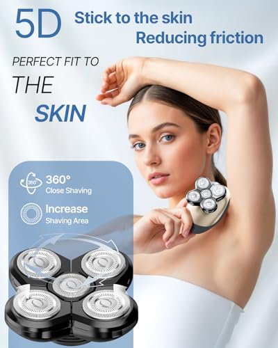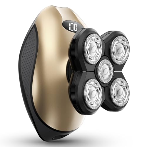 WEQOEE - Head Shavers for Bald Men, 5 in 1 Electric Razor IPX7 Waterproof for Bald Men, 5D Rotary Shaver, Wet Dry Bald Head Shavers, LED Display Rechargeable with Grooming Kit,for Head & Face Shaver