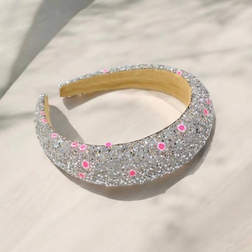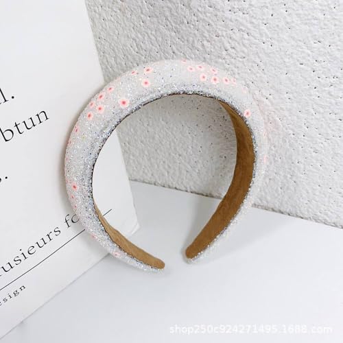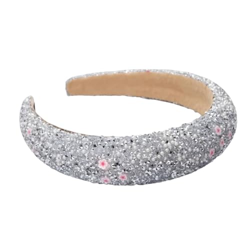 Generic - Headband Rhinestone Hairbands Sparkly Beaded Hair Band No Slip Crystal Head Bands for Women Padded Wide Head Hoops for Ladies Girls Wedding Hair Accessories (Silver, One Size)