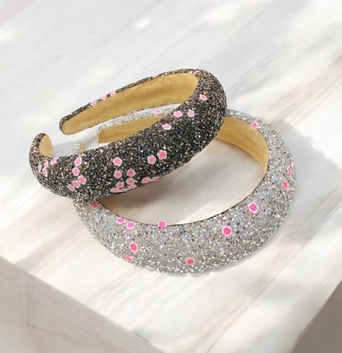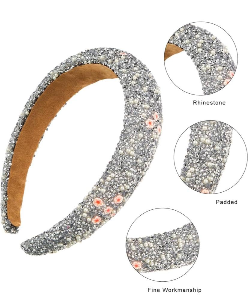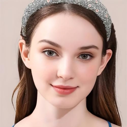 - Headband Rhinestone Hairbands Sparkly Beaded Hair Band No Slip Crystal Head Bands for Women Padded Wide Head Hoops for Ladies Girls Wedding Hair