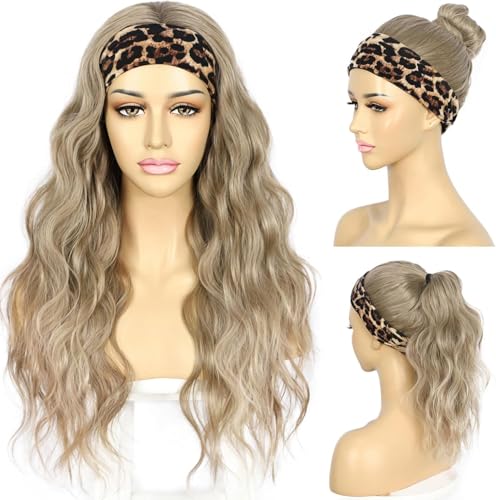 Generic - Headband Wig Body Wave 22 inches Glueless Heat Resistant Synthetic Wigs for Black Women Curly Wave High Density Full Ends Wig Natural Looking Wavy - ASH BLOND N-12A