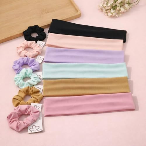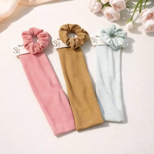 - 2 in 1 functional design: each piece combines a wide headband and a matching scrunchy hair band, providing versatile hair accessories in one