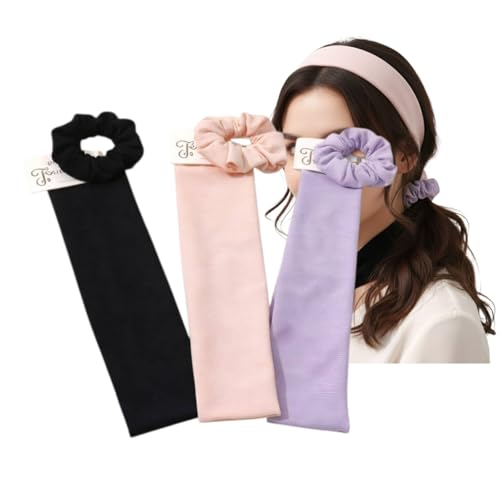 - COMPLETE SET: includes 3 pieces headbands with multiple stylish color scrunchy hair ties (black, pink, purple) to fit different looks and outfits