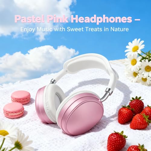 Generic - سماعة رأس لاسلكية GX-5 ستيريو بلوتوث بدون ضوضاء بجودة صوت هاي فاي وصوت نقي وباس هافي وتقنية ENC لتقليل الضوضاء المزدوجة ودعم بطاقة الذاكرة، لون وردي