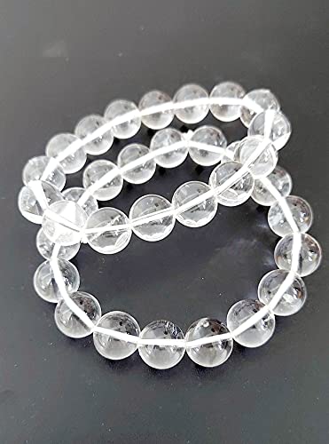 Generic - Healing Clear Quartz Handmade Stretch Bracelet 12mm Large Beads Reiki Healing Amplifier Crystal Crown Chakra Stone. Peace & Happiness Crystal, Base Metal, Clear Quartz