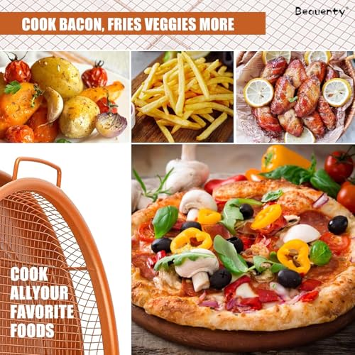 - MULTIPURPOSE KITCHEN ESSENTIAL: Versatile enough for frying, roasting, or baking your favorite foods—vegetables, seafood, meat, or snacks. Perfect for ovens, air fryers, or grills. Its circular design fits easily in most kitchens and complements any cookware collection.