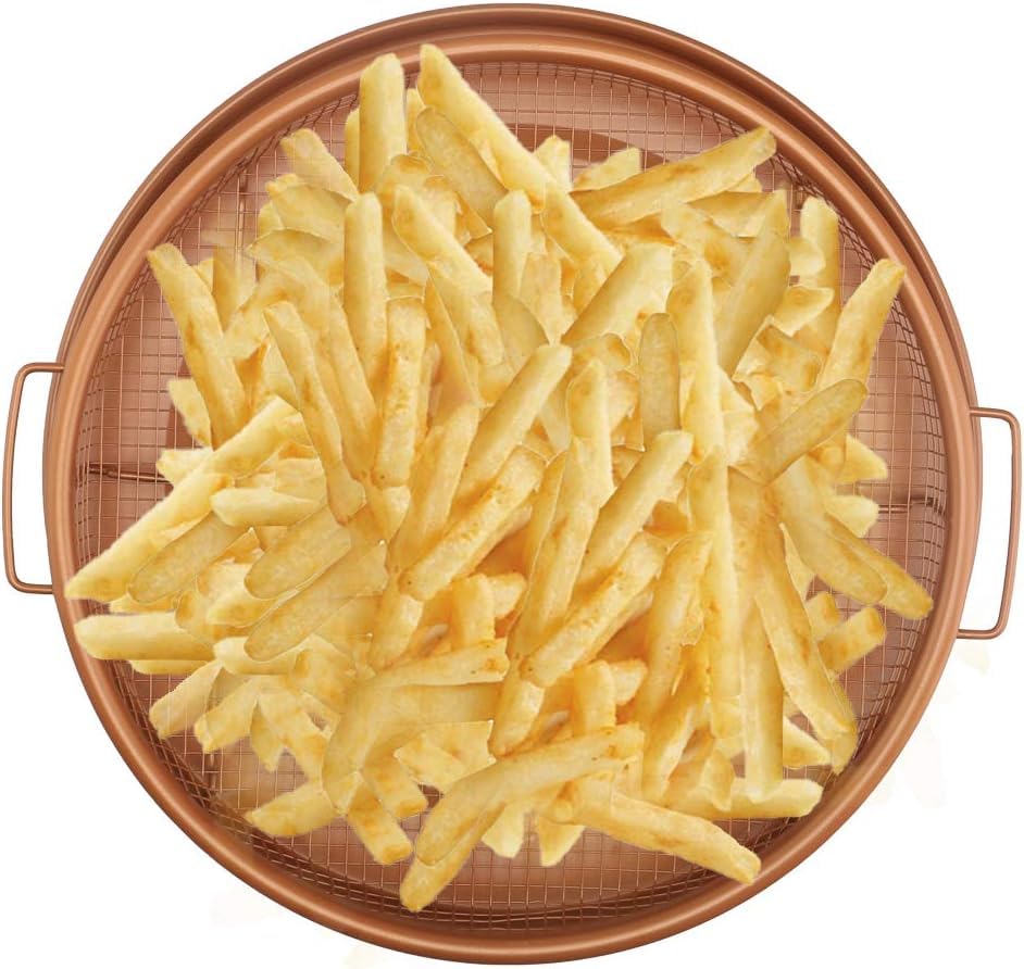 - HEALTHY AIR-FRY STYLE COOKING: Enjoy the crispy results of deep frying with far less oil. This round non-stick tray circulates heat evenly, letting you fry chicken, shrimp, and fries to golden perfection. Reduce fat intake while keeping flavor and crunch intact—ideal for health-conscious home chefs.