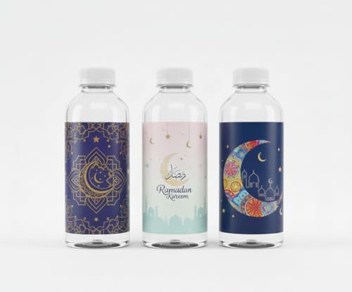 - طقم زجاجات عصير مكون من 3 قطع بأشكال رمضانية مختلفة لتقديم المشروبات بشكل مرتب.