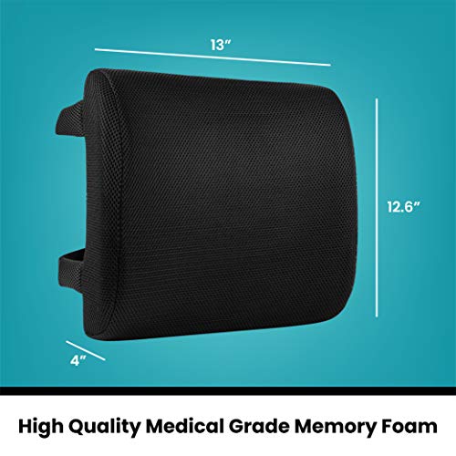 Healthy Spirit - وسادة ظهر لدعم اسفل الظهر من الميموري فوم | دعم الظهر لكرسي المكتب والسيارة | وسادة دعم لاسفل الظهر، لون اسود، قطعة واحدة