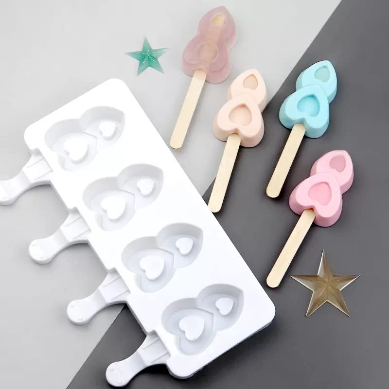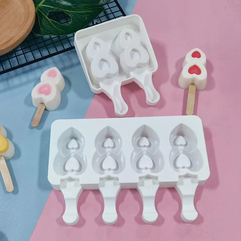 Generic - قالب آيس كريم مكون من 4 تجاويف شكل قلوب