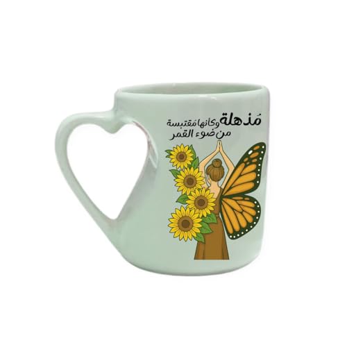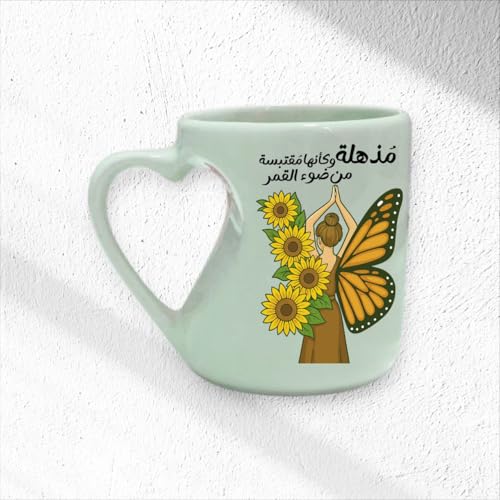 Generic - Heart Ceramic Coffee Mug, 350ml- Motivational Design -special gift- Mint green- One sided printing- Waterproof sticker- مذهلة كأنها مقتبسة من ضوء القمر - We print your gift