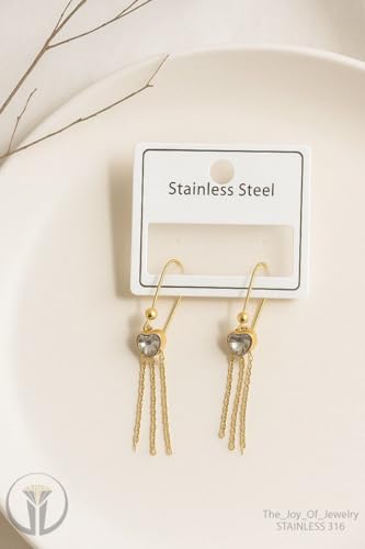 Generic - Heart Chain Dangling Stainless Steel Earring For Women - Gold