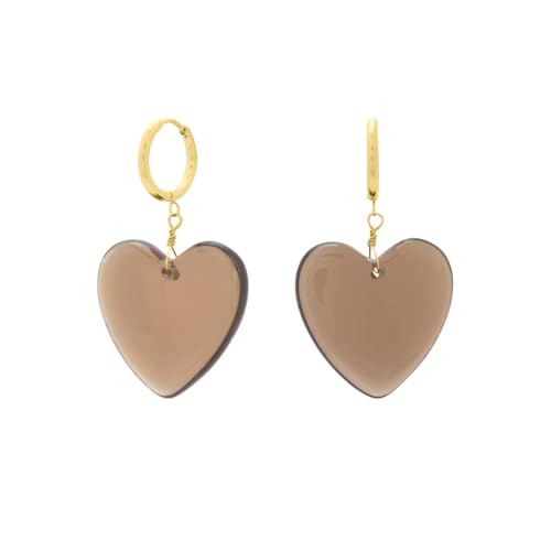 Generic - حلقان كريستال متدلية على شكل قلب، بني، حلقات مطلية بالذهب، طول 3 سم