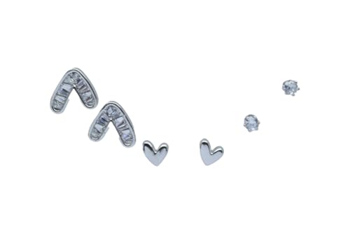 Generic - Heart Design Platinum Earring Set for Women, 6 Pieces, Silver - Earring22