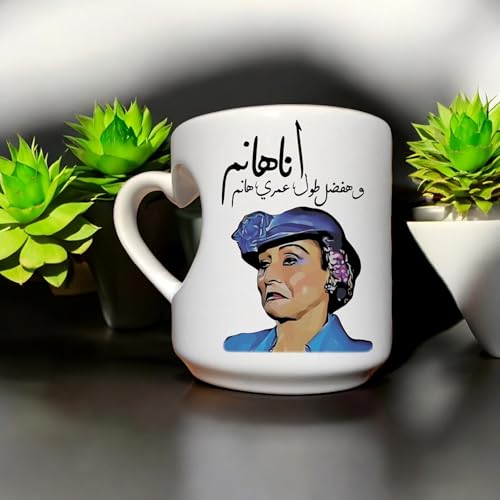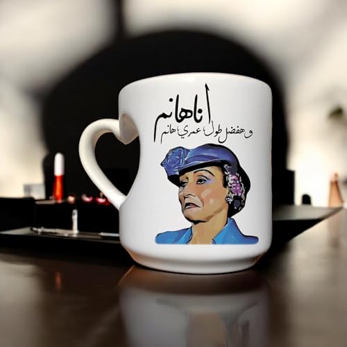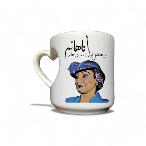Generic - مج بطباعة مضحكة «أنا هانم وهافضل طول عمرى هانم» على الجهتين ومقبض بتصميم قلب السعة 350 ملليلتر