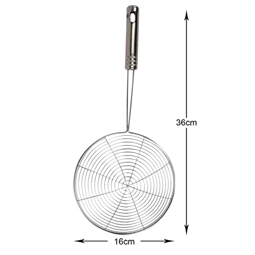 Heart Home - Heart Home Multiuses Stainless Steel Deep Fry Jhara Skimmer Puri Strainer with Handle, 16cm- Pack of 2 (Silver)