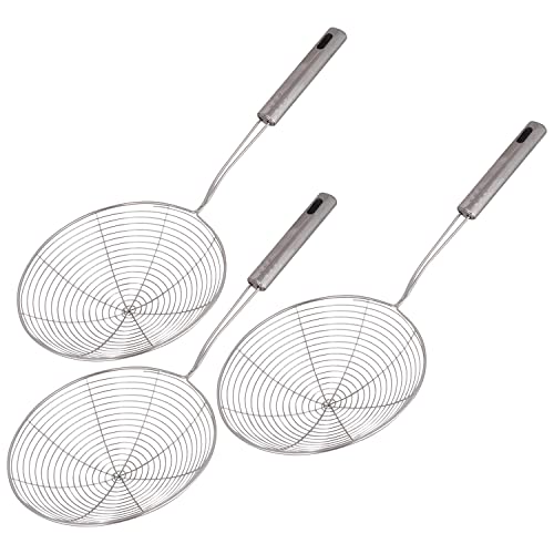 Heart Home - Heart Home Multiuses Stainless Steel Deep Fry Jhara Skimmer Puri Strainer with Handle, 20cm- Pack of 3 (Silver)