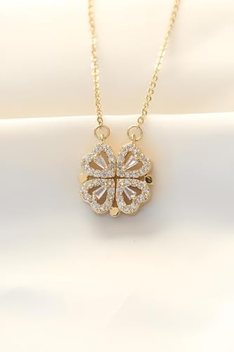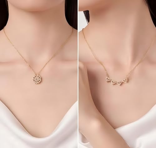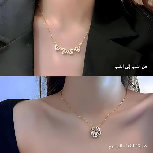 Generic - Heart Necklace - Foldable 4-Heart Chain Transforms into Clover Leaves, Stainless Steel Design, Perfect Romantic Gift for Valentine's, Engagement, or Wedding