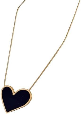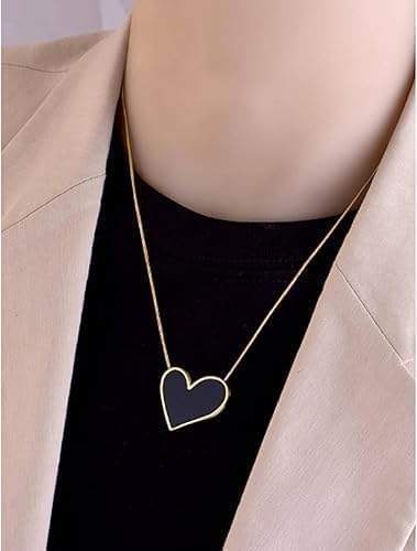 Generic - عقد بقلادة على شكل قلب، سلسلة مطلية بالذهب مع ترصيع باللؤلؤ، تصميم انيق من الستانلس ستيل