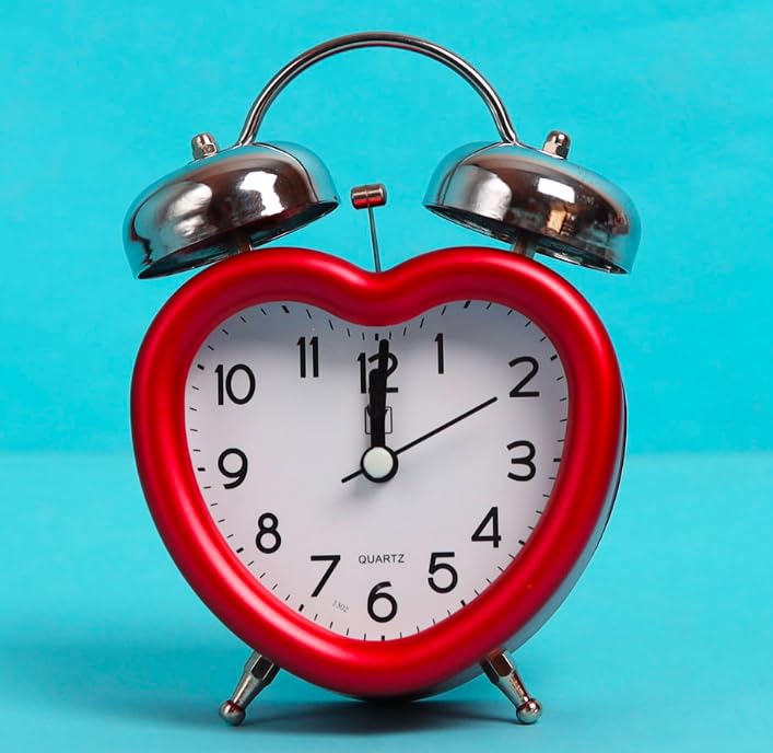 - CHARMING DESIGN: Heart-shaped red acrylic alarm clock features a classic twin bell design with chrome finish bells and a clear, easy-to-read white dial with black Arabic numerals