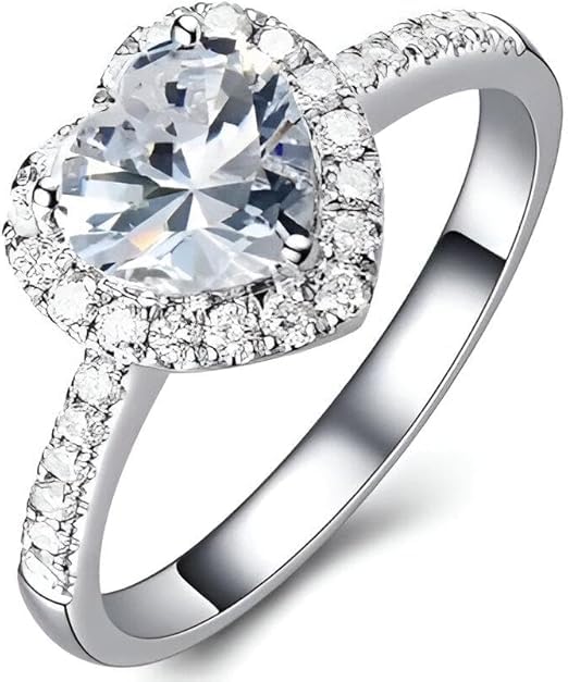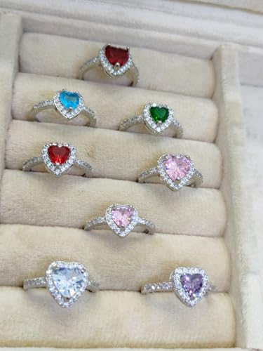 Generic - Heart-Shaped Gemstone Ring with Crystal Halo, Sterling Silver Band, Available Amethyst and Ruby