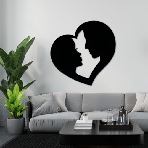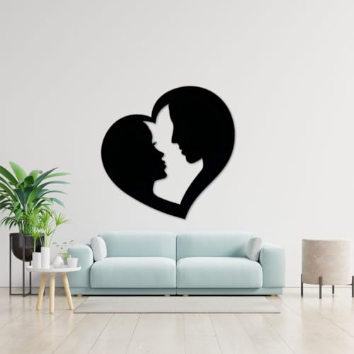 - MODERN DESIGN: Striking heart-shaped silhouette wall art featuring a romantic couple's profile in contemporary black finish