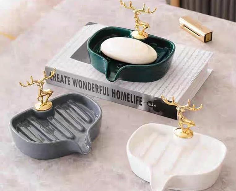 Generic - Heart Soap Dish with Gold Deer Decoration, Available in Olive, White, Black (White)