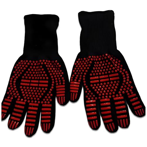 - 💗💗【HIGH QUALITY】 The grill glove is made up of 3 material. Silicone can provide anti-slip protection and is flexible enough. Aramid fiber, high-heat, cutting, acids and alkali. Polyester Cotton, Soft Enough Inside