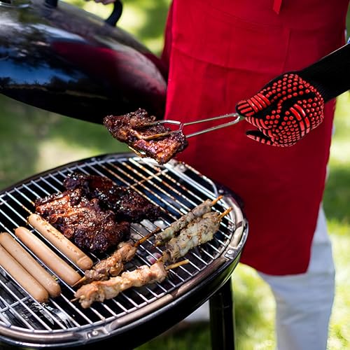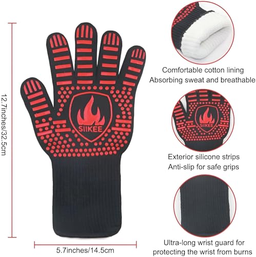 - These heat resistant gloves are perfect for various cooking activities, including grilling, baking, and handling hot utensils. It allows users to focus on cooking tasks without worrying about burns, as they can withstand temperatures ranging from 300 to 500 degrees Fahrenheit. However, it is important to note that although the gloves are heat resistant, they are not scald resistant, so be careful when dealing with the very hot elements.