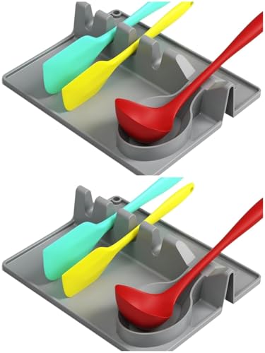 Generic - مسند معالق سيليكون جامبو مقاوم للحرارة - بساط حامل ادوات مطبخ مرن لادوات الطبخ - واقي سطح الطاولة غير قابل للانزلاق - مقاس كبير 20 × 26 سم (رمادي (عبوتان))