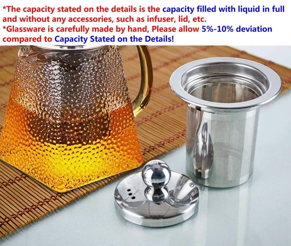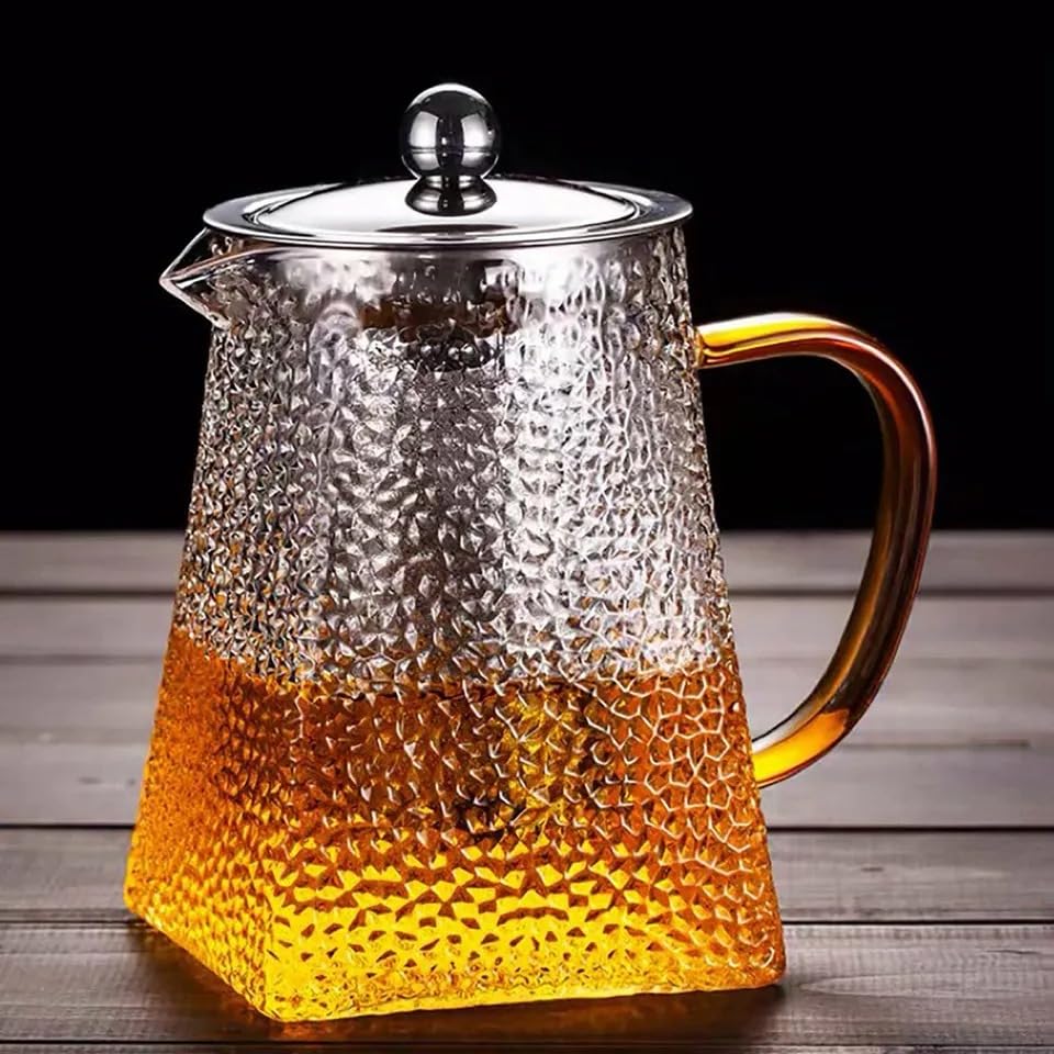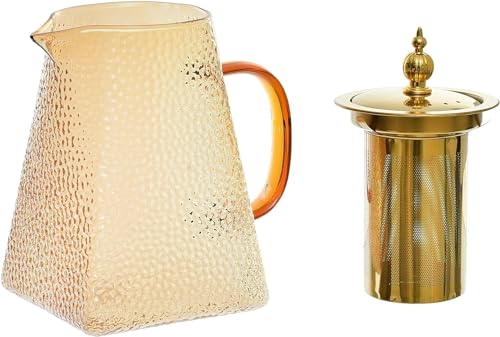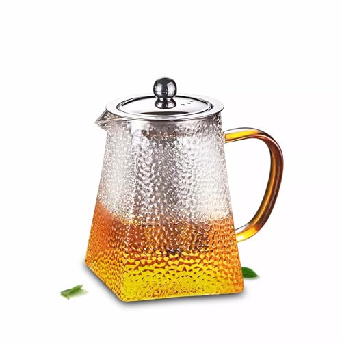 Generic - إبريق شاي مضلع من زجاج بليكسي المقاوم للحرارة مع غطاء أصفر بمقبض ومصفاة من الستانلس ستيل 950 مل (ذهبي)