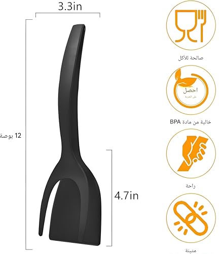 - يجمع التصميم المبتكر القابل للطي 2 في 1 بين ملعقة مسطحة وملاقط في أداة واحدة، مما يجعل التقليب والرفع وتقديم الطعام أسهل بكثير. مثالية لطهي البيض والبرغر والفطائر والأسماك والأطباق المقلية الأخرى مع المزيد من التحكم والراحة.