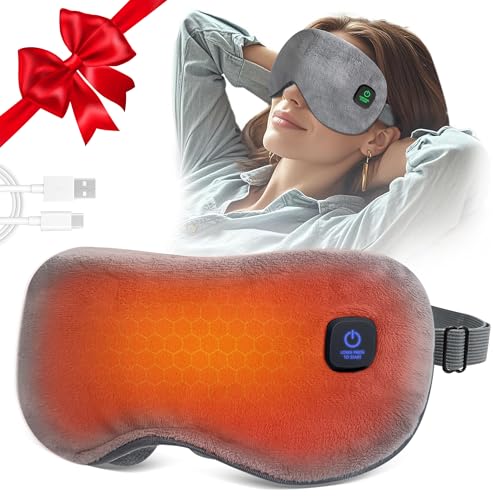 BOYUNSHI - Heated Eye Mask, BOYUNSHI Cordless Eye Mask for Dry Eyes and Fatigue, 3 Heat Levels Rechargeable Warm Eye Compress with Adjustable Strap, Ideal Gifts for Women & Men, Sleep, Travel, Washable