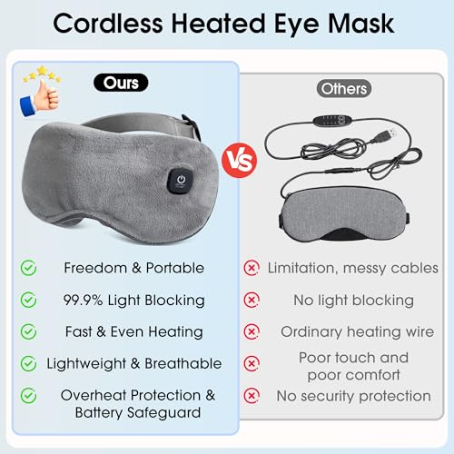 - 【Widened Design & Soft Comfortable】- Ultra-plush velvet eye heat mask doubles as a blackout sleep mask; Breathable fabric enhances warm eye compress therapy without skin irritation, 99.9% blackout; Adjustable strap ensures eye mask heated comfort for all faces