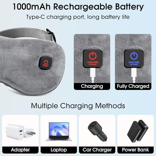 - 【Cordless & Portable】- This electric heated eye mask features USB-C charging, charge your mask anywhere; Built-in 1000mAh rechargeable battery(8-10 sessions/charge); without being tethered to a power outlet or cable; making it perfect for use at home, during travel, or at work