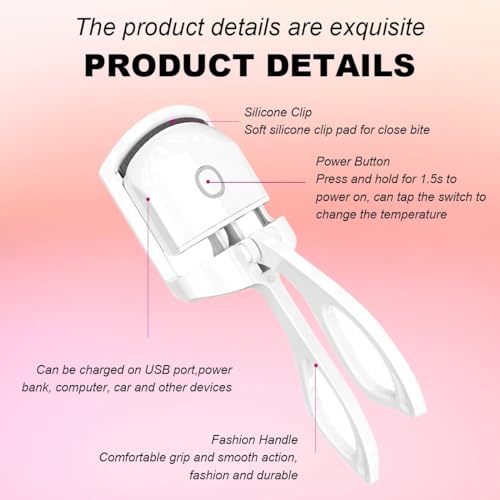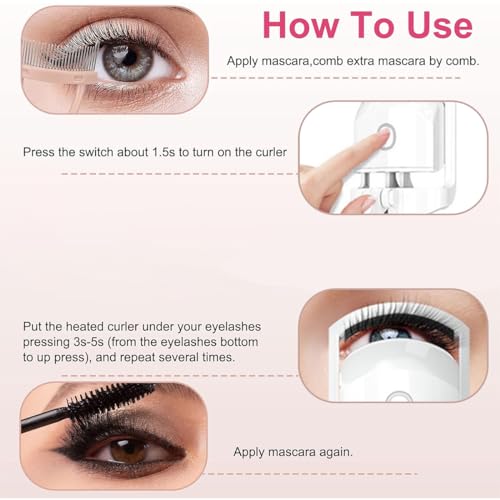- 【Heated Eyelash Curler】Electric eyelash curler will instantly and effortlessly curl and shape your eyelashes to enhance your eyes. Fast, lift, curl and shape minute lashes, save time for your daily makeup.