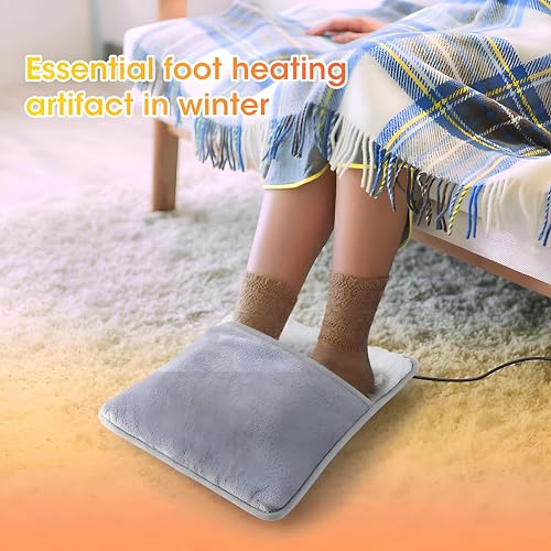 Generic - وسادة تدفئة للقدم، مدفأة كهربائية محمولة تعمل عبر USB مع قاعدة سيليكون مانعة للانزلاق وسطح قطيفة ناعم مثالية للراحة في أجواء الشتاء في المنزل أو المكتب، رمادي وأبيض، مقاس 30×29 سم