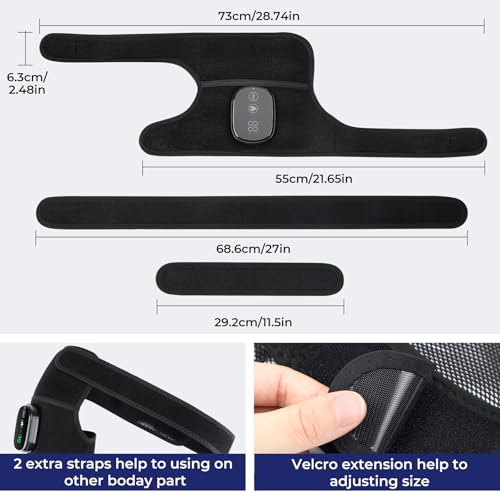 - 3 IN 1 HEATED MASSAGER WITH VIBRATION: It is not only a heated knee brace, but can also be used for shoulders and elbows. We also offer extension straps for other parts of the body, one long and one short, which can be used on almost any part of the body.