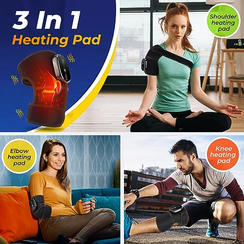 EDIFOLLY - Heated Knee Massager, Rechargeable Heated Knee Warp With Vibration, 3 IN 1 Heated Knee Pad for Shoulder Elbow Knee, 3 Adjustable Vibration Modes and Temperature, Heated Knee Brace for Adult, 1 Pack