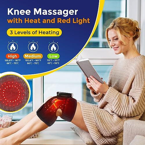 - HEATED KNEE MASSAGER WITH LIGHT:Our red heated knee massagers provide 3 levels of heat: Low Temperature - Temperature range 113℉/45℃ to 131℉/55℃. Medium - Temperature range 132.8℉/56℃ to 149℉/65℃. High - Temperature range 150.8℉/66℃ to 167℉/75℃. It is the best knee elbow shoulder massager to warm and relax your body parts.