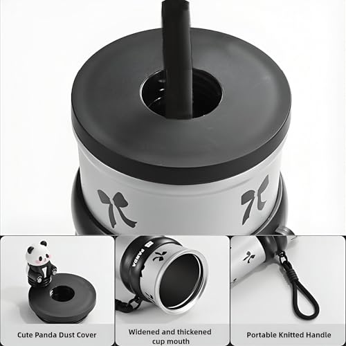 - Featuring a threaded lid with a silicone seal and a panda-themed dustproof straw cap, this water bottle ensures your drinks remain leak-proof and dirt-free, preserving hygiene and preventing spills even on bumpy rides.