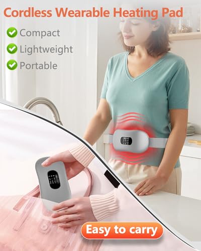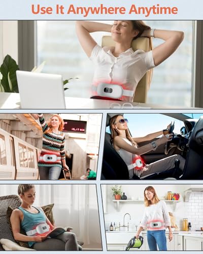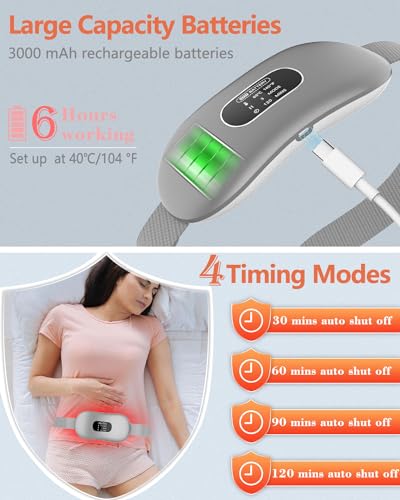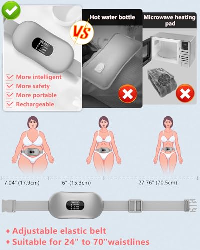 - 【Heat Belt--a Best Gift for Her】:Heating pad for period pain with built-in batteries can be used anytime anywhere, whether at home, office, or outdoor activities, without being limited by power sockets or microwaves. Adjustable elastic belt suitable for 42.9"to 59"waistlines.Period cramp belt is a perfect gift for women, such as Valentine's Day,Mother's Day,birthdays, holidays or anniversaries