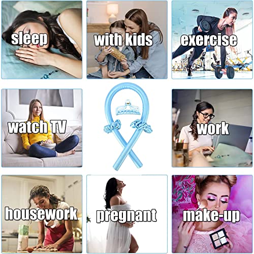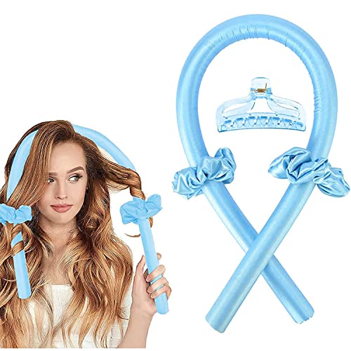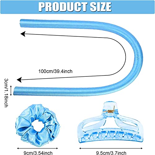 SONGQEE - Heatless Curling Rod Headband, Heatless Curlers Headband, Heatless Curls Hair Styling Tools for Long Medium Hair, Heatless Hair Curling Wrap Kit with Scrunchies and Hair Clip, Silk Hair Wrap (BLUE)