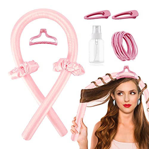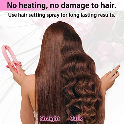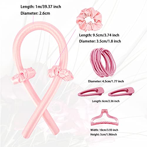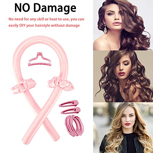 Ftaxiv - Heatless Hair Curler for Long Hair, No Heat Silk Curling Ribbon Rods, Women Heatless Curling Rod Headband, Sleep Comfortable Silk No Heat Curls Ribbon DIY Hair Styling Tools for Long Hair (Pink)
