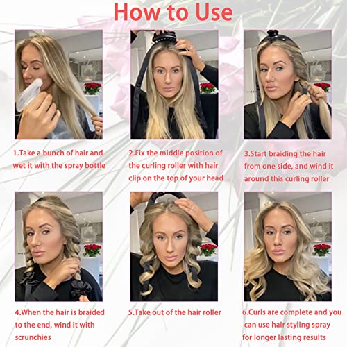 - 【Easy to use】Wet your hair with a spray bottle, divide your hair into 2 sections, place the curling iron on top of your head, then wrap your hair around one side of the curling iron and secure, and secure the bottom with a hair tie. Tip: Make sure the hairband is tightly wrapped around your hair for better curls.