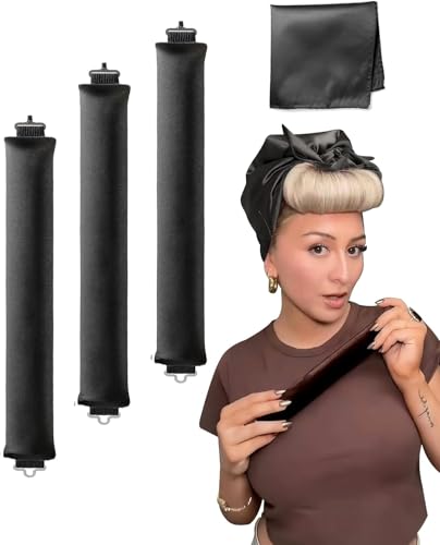 YOSHUYUKI - Heatless Hair Curler to Sleep in - Overnight Heatless Curls Blowout Rods Headband No Heat Curling Set, Jumbo Rods Hair Rollers Blowout Look for Long Hair Silk Hair Wrap for Sleeping Black