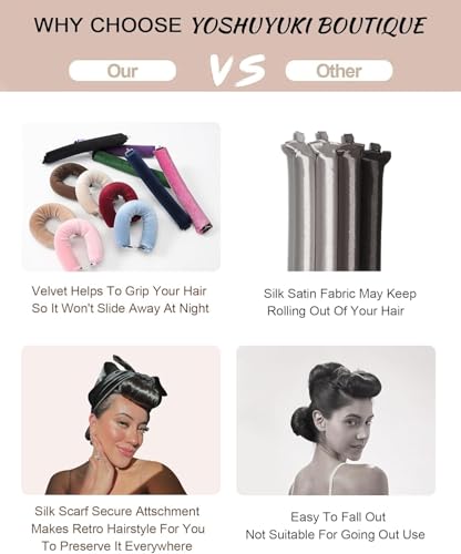 - CONCIOUSLY CREATED: Our 4 set Velvet Overnight Blowout Rods 1.2" Curling Wand handcrafted with love, boasts the exquisite touch of soft velvet material, ensuring a secure grip and tight roll that lasts throughout the night. With an easy hook-and-lock design, even thick hair remains beautifully intact. The silk hair head wrap for sleeping scarf effortlessly transforms sleep styler into a retro hairstyle for an added touch of allure.