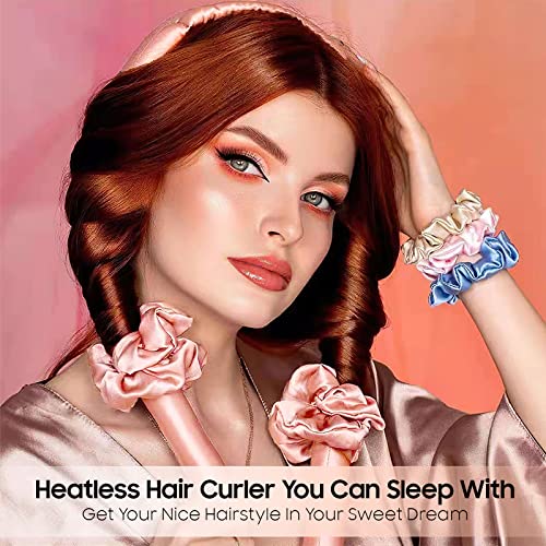 Oetnaisan - Heatless Hair Curlers – No Heat Satin Curling Rod Headband Set for Long Hair to Sleep In with Hair Clip and Scrunchies, Overnight Soft Lazy Curly Hair Accessories for Women Natural Curly Hair Pink