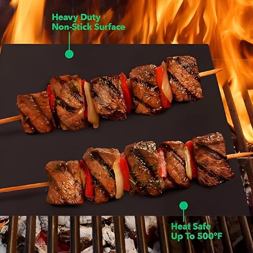 - مفارش الشواء مقاس 40 × 33 سم مصممة من مادة الألياف الزجاجية المتينة، وتتحمل درجات حرارة تصل إلى 260 درجة مئوية، مما يجعلها مقاومة للحرارة بشكل فعال وتدعم الطهي عالي الحرارة دون تلف.