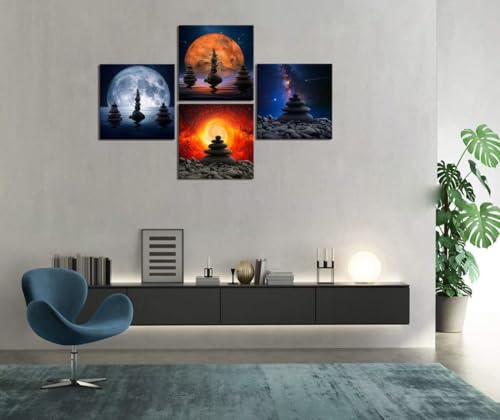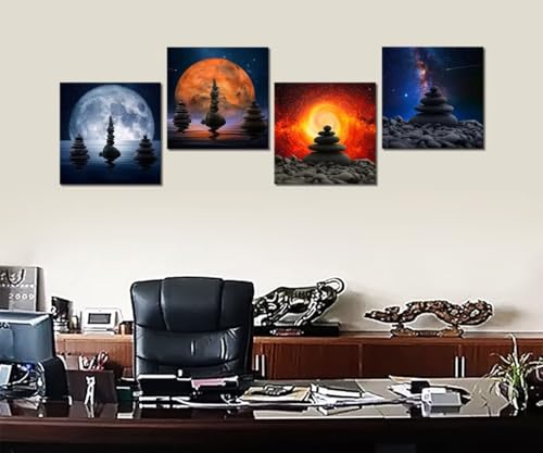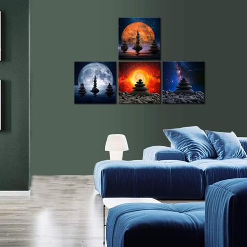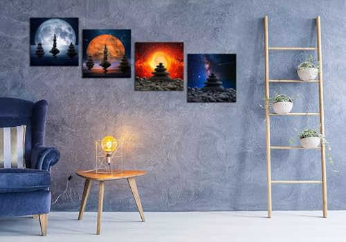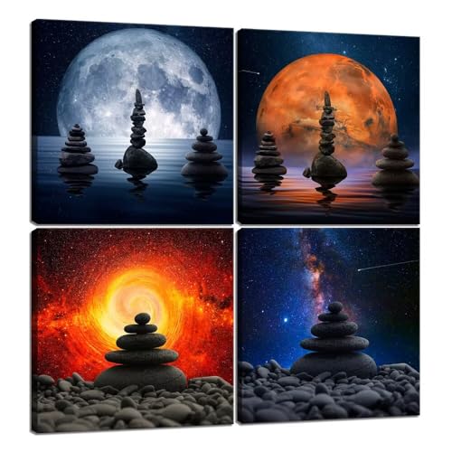 Heatsprits - Heatsprits Zen Stones Wall Art Universe Planet Wall Decor Zen Balance Canvas Painting Pictures Spa Artwork Modern Print for Bathroom Living Room Bedroom 12''x12'' x 4Pcs